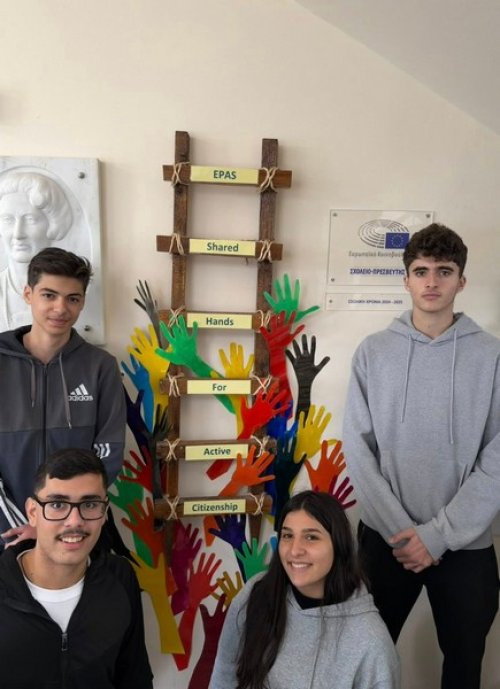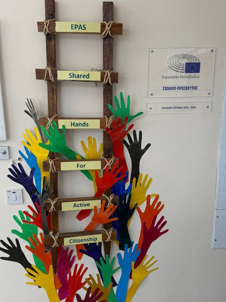 Σε αυτή την κατασκευή, του Σχολείο Πρεσβευτής του Ευρωπαϊκού Κοινοβουλίου του Παγκυπρίου Λυκείου Λάρνακας, γίνεται το μονοπάτι που μας ανεβάζει προς την ενεργή πολιτότητα βήμα, βήμα και μαζί.Γύρω της απλώνονται πολύχρωμα, διαφορετικά, μοναδικά χέρια, αλλά ενωμένα. Είναι οι φωνές μας και οι ιδέες μας, η συνεργασία μας. Είναι η απόδειξη ότι η δημοκρατία χτίζεται με συμμετοχή, σεβασμό,αλληλεγγύη και δράση.““Σχολείο - Πρεσβευτής του Ευρωπαϊκού Κοινοβουλίου”European Parliament Ambassador School Programme