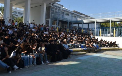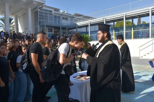Με την ευκαιρία της έναρξης της νέας σχολικής χρονιάς, ο Πανιερώτατος Μητροπολίτης Κιτίου κ. Νεκτάριος τέλεσε τον καθιερωμένο αγιασμό στο σχολείο μας και ευχήθηκε από καρδιάς στους μαθητές και στους εκπαιδευτικούς ευλογημένη χρονιά με υγεία.