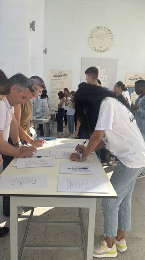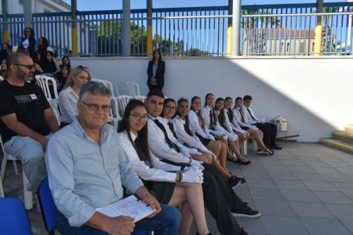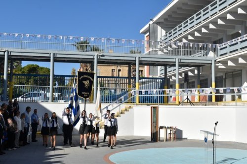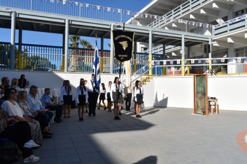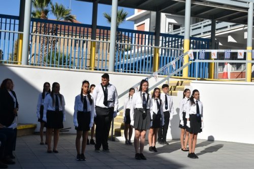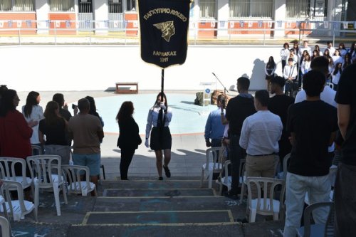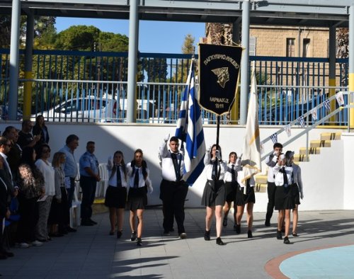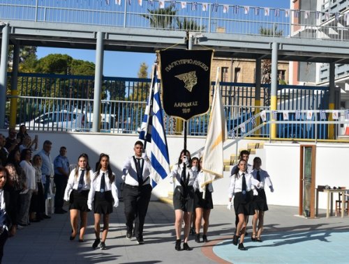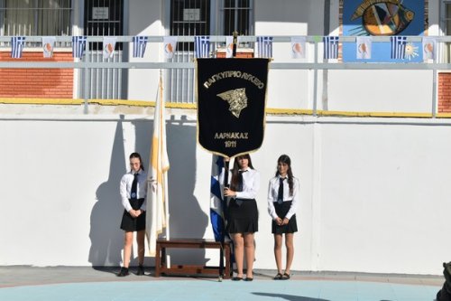 Στο πλαίσιο του εορτασμού της Εθνικής μας Επετείου πραγματοποιήθηκε η ανακήρυξη των σημαιοφόρων και παραστατών, που θα εκπροσωπούν με τιμή και ευθύνη το Παγκύπριο Λύκειο Λάρνακας. Δίπλα από το λάβαρο του σχολείου μας κυμάτισαν περήφανες, πλάι πλάι, η ελληνική και η κυπριακή σημαία, υπενθυμίζοντας ότι τα ιδανικά της ελευθερίας και της αξιοπρέπειας παραμένουν οδηγός της νέας γενιάς.