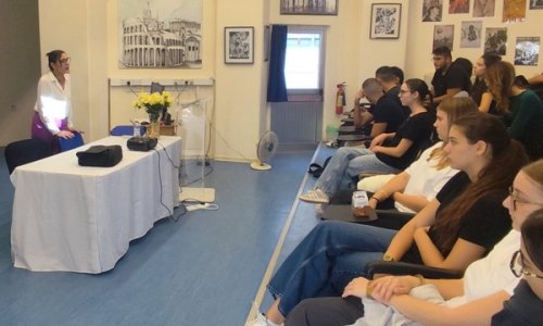 Η κ. Στέλλα Πέτρου, λειτουργός του Κέντρου Αιμοδοσίας, μίλησε με γνώση και ευαισθησία στους μαθητές και τις μαθήτριες για τη σημασία της εθελοντικής προσφοράς αίματος, τη διαδικασία της αιμοδοσίας και τον ανεκτίμητο ρόλο που μπορεί να έχει κάθε αιμοδότης στη διάσωση ζωών.