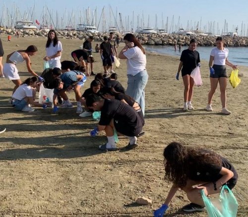 β) Καθαρές παραλίες. Μαθητές και μαθήτριές μας εφοδιασμένοι με σακούλες σκουπιδιών και γάντια μίας χρήσης συνεισφέρουν στο καθάρισμα του παραλιακού μετώπου.