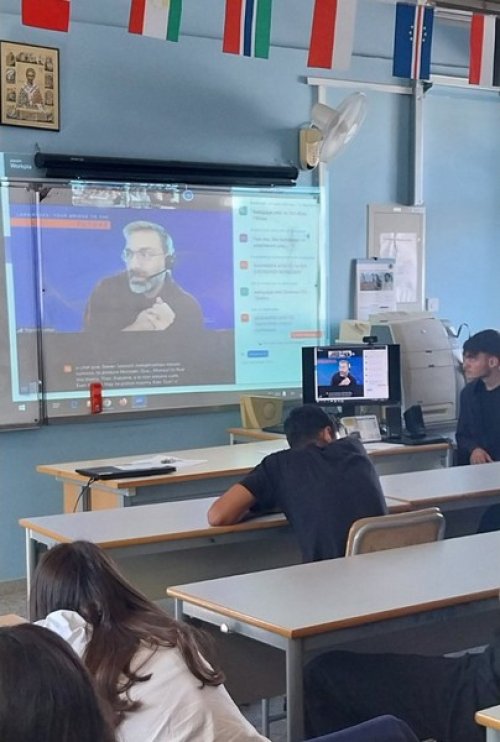 Μαθητές της Γ’ Λυκείου του σχολείου μας συμμετείχαν σε Πανευρωπαϊκή Διαδικτυακή εκδήλωση με τίτλο «Γλώσσες: η γέφυρά σας προς το μέλλον». Η εκδήλωση, με τη συμμετοχή μεταφραστών του γλωσσικού κλάδου της Ευρωπαϊκής Επιτροπής, ανέδειξε τη σημασία της πολυγλωσσίας και τις ευκαιρίες που προσφέρουν οι ξένες γλώσσες στον σύγχρονο, πολυπολιτισμικό κόσμο. Οι μαθητές είχαν την ευκαιρία να συνομιλήσουν με μεταφραστές, να πάρουν απαντήσεις σε ερωτήματά τους και να αντλήσουν έμπνευση για τη μελλοντική τους σταδιοδρομία.