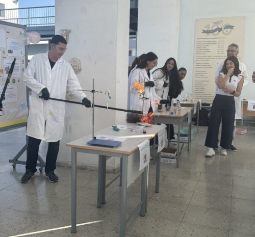 Οι μαθητές και οι μαθήτριες της Χημείας πραγματοποίησαν πειράματα και παρουσιάσεις, προσελκύοντας το ενδιαφέρον όλων για τη μαγεία της επιστήμης.