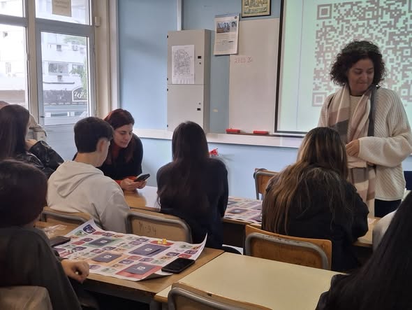 As part of the Erasmus+ program “ Active Citizenship: Training, Innovation, and Voluntary Engagement in Schools” implemented at our school, an informative activity was carried out focusing on the identification of fake news on social media. Students were informed by a specialized organization and then, divided into groups, participated in an interactive board game through an application using QR codes, answering questions related to online misinformation. The activity combined learning with play and proved to be an enjoyable and highly educational experience for all participants.