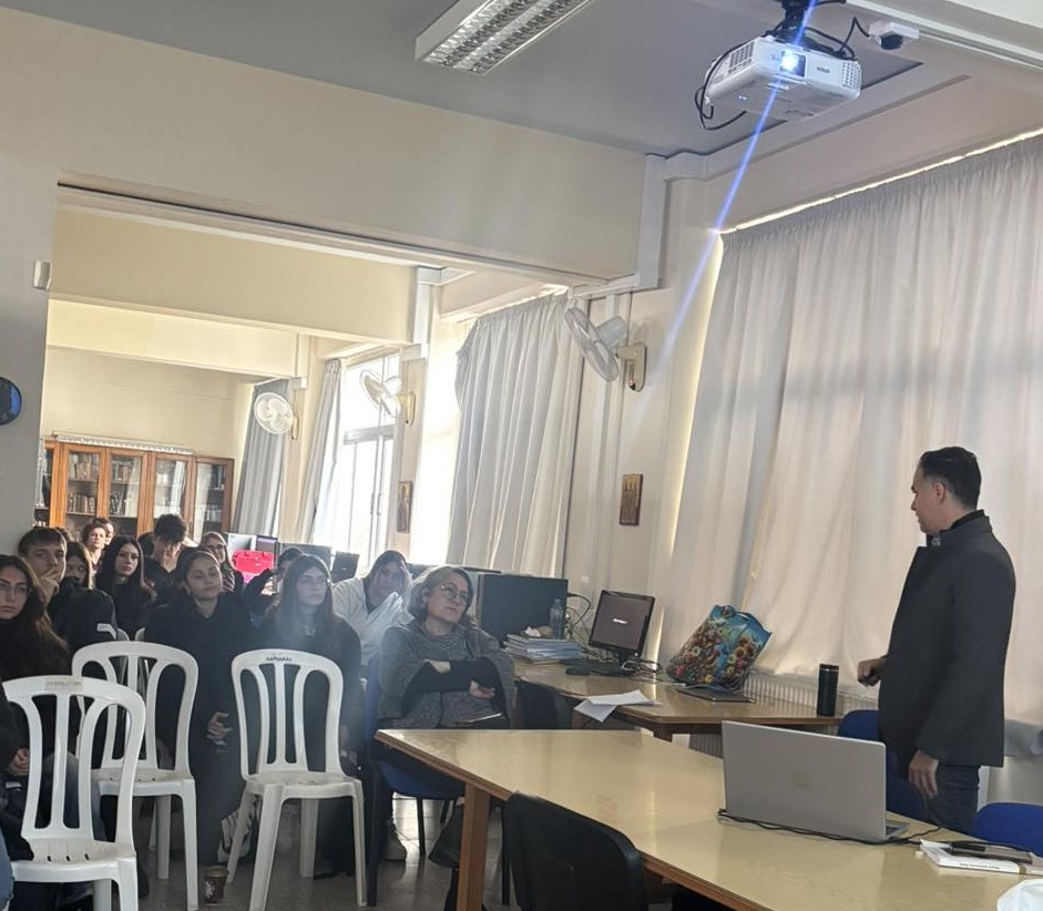 Ο προσκεκλημένος ομιλητής από το Πανεπιστήμιο Λεμεσού, δρ. Χριστόδουλος Ευσταθιάδης, παρουσίασε με απλό και κατανοητό τρόπο πώς ξεκίνησε η τεχνητή νοημοσύνη, πώς λειτουργεί και με ποιον τρόπο «χτίζει» τη γνώση της. Μέσα από έναν ζωντανό διάλογο με τους μαθητές, συζητήθηκαν οι σύγχρονες χρήσεις της ΑΙ, οι δυνατότητές της αλλά και οι προκλήσεις που τη συνοδεύουν.